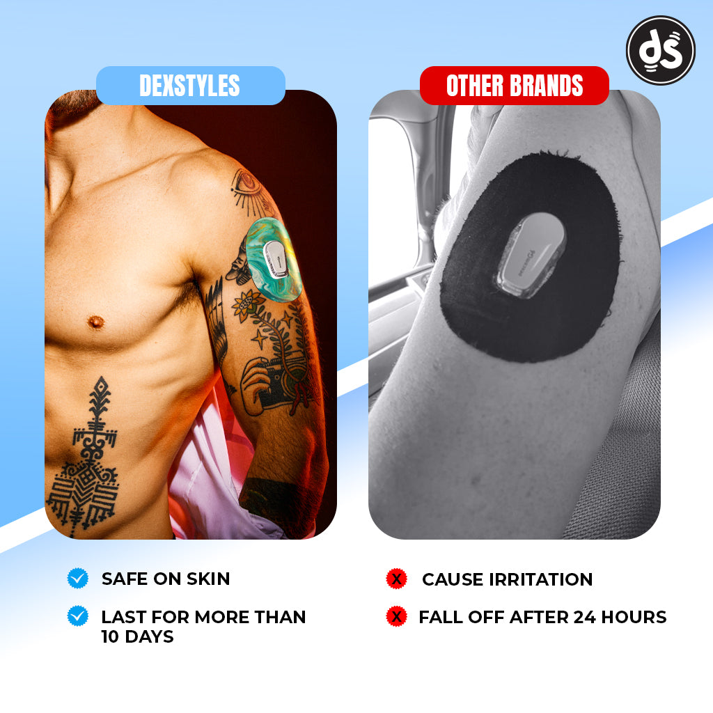 Designed by a Type 1 Diabetic, Dexstyles patches are made for real life—comfortable, durable, and skin-safe.