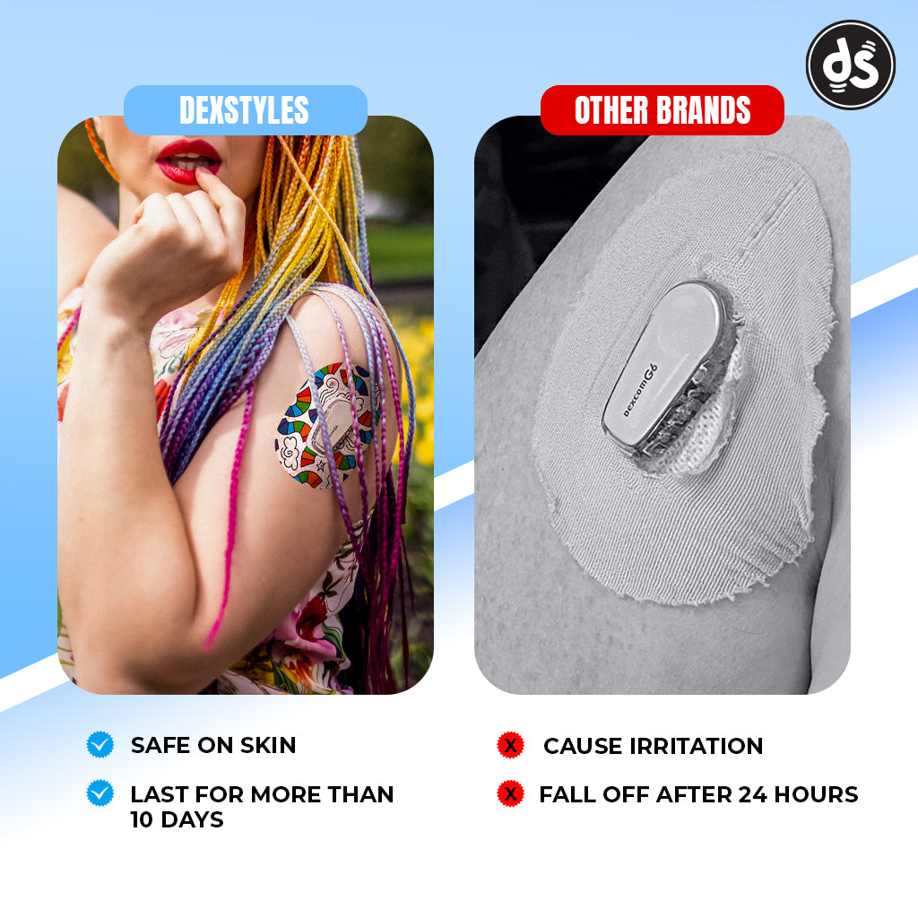 Designed by a Type 1 Diabetic, Dexstyles patches are made for real life—comfortable, durable, and skin-safe.